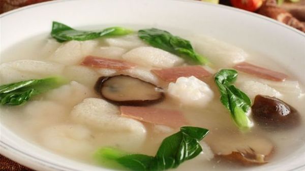 生菜500克、年糕200克、竹蓀10克、金針菇50克、豆腐2塊、杞子2克、生姜數(shù)片、胡椒粉適量(3~4人量)。