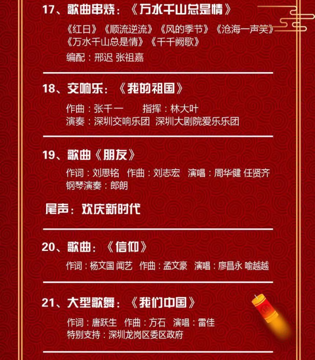 這場(chǎng)晚會(huì)的作品原創(chuàng)味十足。在20多個(gè)節(jié)目中,相當(dāng)一部分音樂作品來自深圳本土原創(chuàng),開場(chǎng)的《城市歡樂頌》、譚維維演唱的《南方有座山》、陳思思演唱的《南國花兒艷》、廖昌永/喻越越演唱的《信仰》、雷佳演唱的《我們中國》等等,這些原創(chuàng)歌曲集中展現(xiàn)了深圳30多年來在音樂創(chuàng)作上的成果。