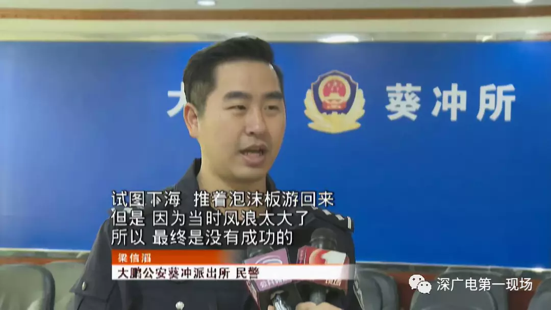 據(jù)大鵬公安葵沖派出所民警介紹,當時兩個小孩漂得挺遠了,其中一個想試圖下水把泡沫板推回去,但是失敗了。