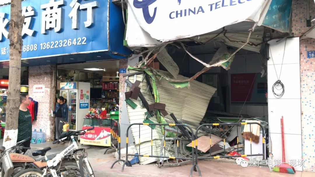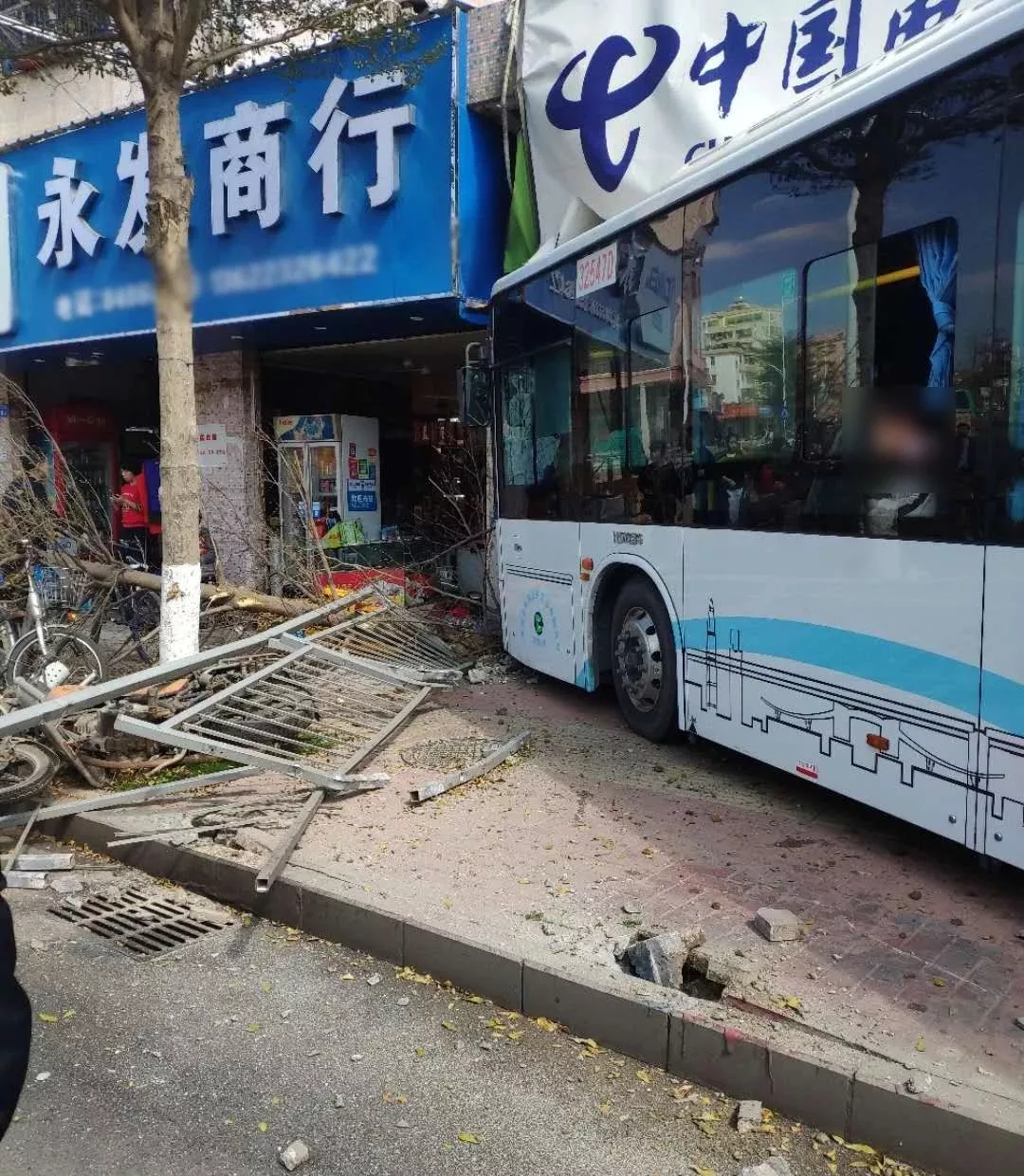 公交車撞上的位置涉及三個店面,其中一個店面受損比較嚴(yán)重,另外兩家店鋪只損壞了廣告牌。