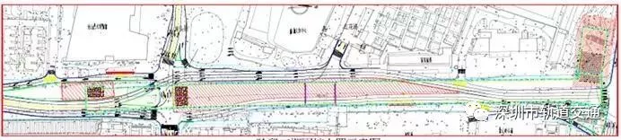 南頭古城站位于深南大道與南山大道交叉路口南側(cè),沿南山大道呈南北向布置,與規(guī)劃軌道20號線換乘。車站周邊均為商業(yè)、住宅或商住樓,基本為已建成區(qū)。路口處的春花天橋除梯道外均不能拆除,是本次交通疏解的難點。此次主要進(jìn)行西側(cè)地連墻及蓋挖段半幅頂板施工,路口處利用已施做蓋板進(jìn)行交通疏解。