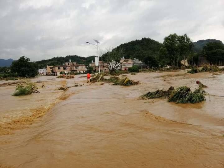 受強降雨天氣影響,6月10日上午,連平縣上坪鎮(zhèn)爆發(fā)幾十年一遇的大洪災,瞬間上坪鎮(zhèn)部分村落和街道變成“汪洋”。