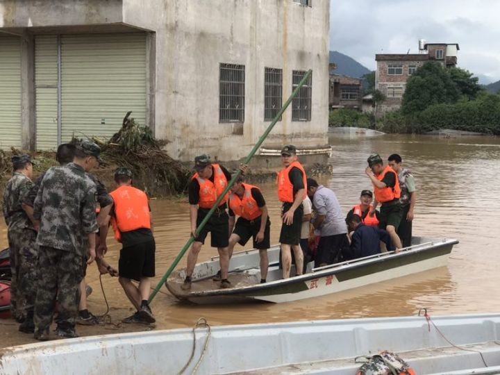 11時(shí)20分許,連平縣上坪鎮(zhèn)新陂村,武警連平中隊(duì)出動(dòng)15名官兵,成功將3名被困群眾解救出來(lái)。