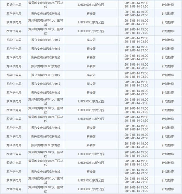 【6月14日停電計(jì)劃】