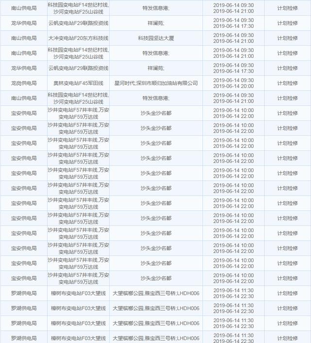 南方電網(wǎng)發(fā)布6月13日至6月16日深圳停電計(jì)劃 涉及多個(gè)區(qū)