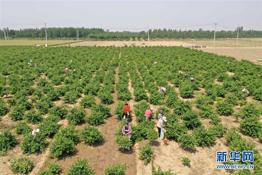 5月21日,河北省清河縣農(nóng)墾金銀花種植專業(yè)合作社社員在采收金銀花(無人機(jī)照片)。2017年以來,河北省清河縣在推進(jìn)農(nóng)業(yè)產(chǎn)業(yè)結(jié)構(gòu)調(diào)整過程中,結(jié)合市場需求,立足當(dāng)?shù)赝寥?、氣候特點(diǎn),依托公司“訂單”引導(dǎo)農(nóng)民發(fā)展金銀花種植。目前,清河縣金銀花種植面積近2000畝,帶動(dòng)40多個(gè)村莊的2000余名農(nóng)民人均增收千元以上。新華社記者牟宇攝