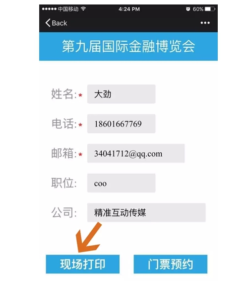 4、提示【輸入打印碼】是在現(xiàn)場門票終端取票時使用。