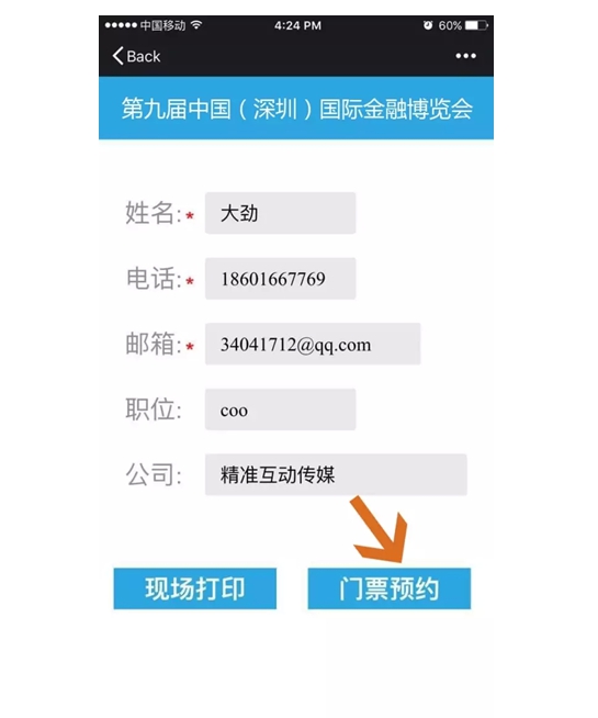 2、如實填寫相關(guān)參展信息,點(diǎn)擊【門票預(yù)約】提交。